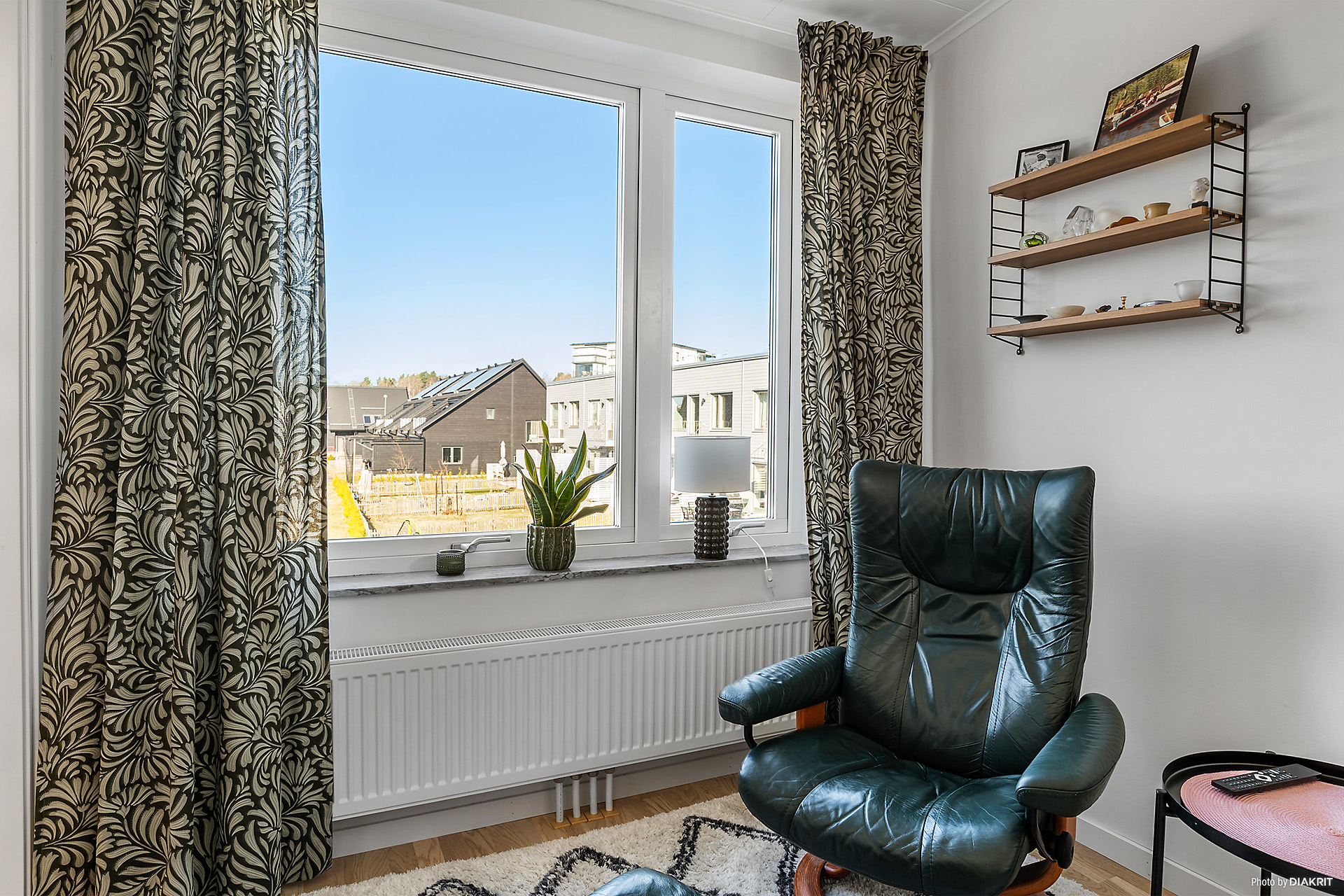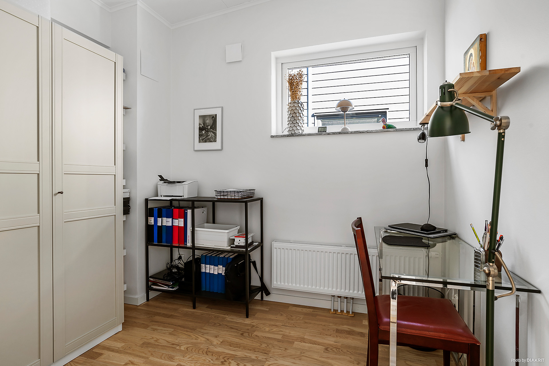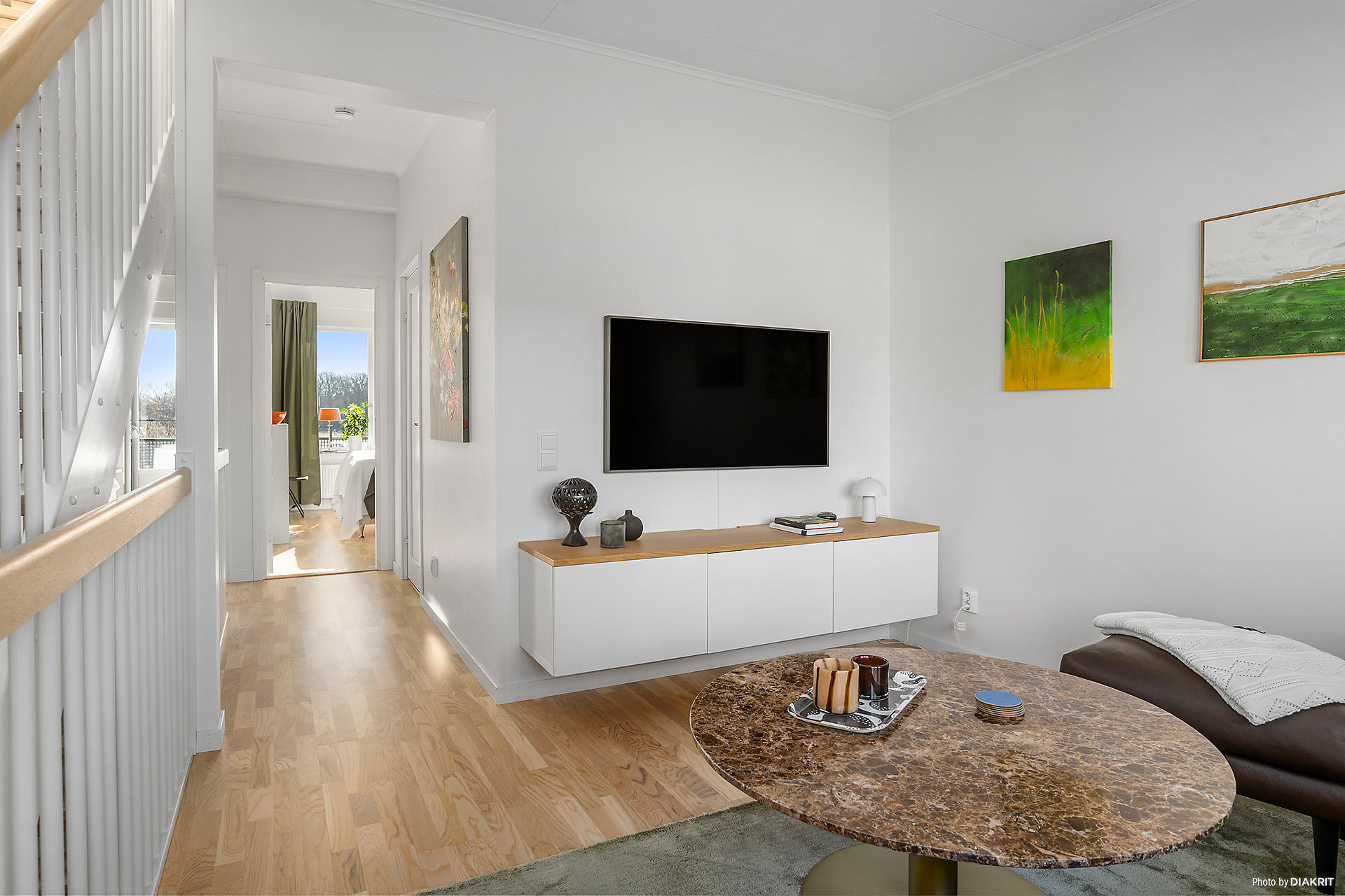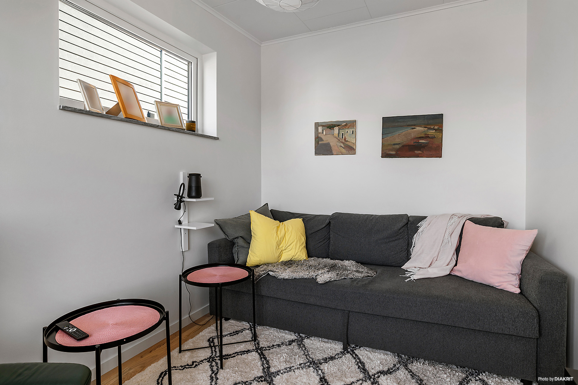 Ett skönt extra allrum för barnen eller för tv rummet. Fönster mot entrésidan. Trappa mot takplan/takterrass