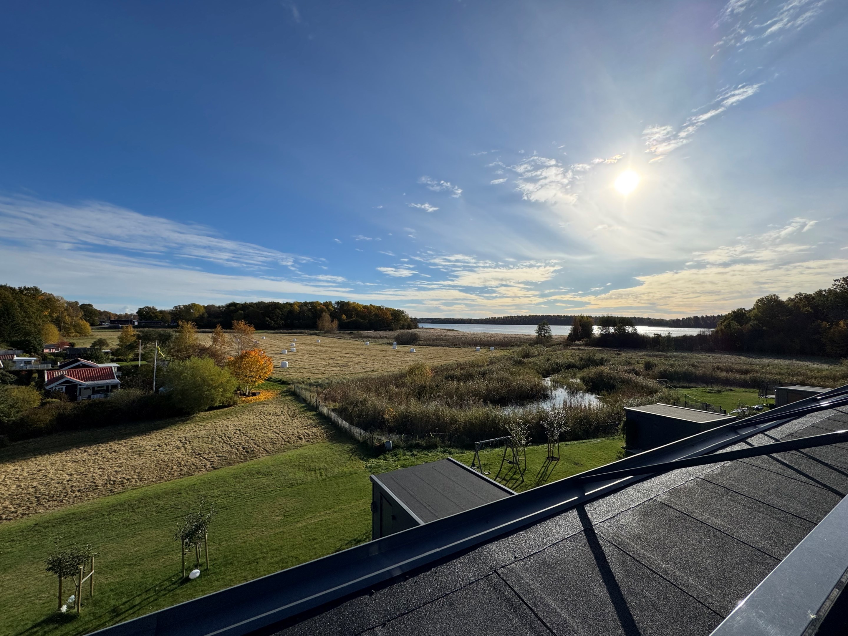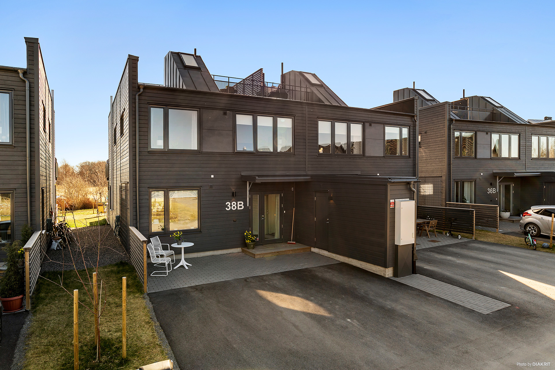 * HAVSUTSIKT * FLERA UTEPLATSER VARAV EN TAKTERRASS * NATUROMRÅDE * MÖJLIGT BYTE Har du ännu inte haft möjlighet att uppleva detta område så ta dig tid att strosa runt innan visningen. Här finns ett parhus i stilsäker design som väcker nyfikenhet! En av få hus med takterrass där du bjuds på en vidsträckt utsikt över viken. På två plan ryms 6 rum och kök och den vackra baksidan erbjuder ett boende i naturskön miljö. Ja, man kan nog säga att detta är ett av de bästa lägena i Solbacka Strand. Från vardagsrummet passerar du genom dubbeldörrarna ut till terrassen och din trädgård med egen gräsmatta att sticka ner fötterna i på morgonen. Här behöver du inte göra avkall på något för det finns stora ytor för vänner och familj och du kommer säkert få mycket beröm för bostadens fina fönster och ljusinsläpp. Ett extra plus är det fönster som sitter på gaveln vid matsalsbordet i vardagsrummet. Köket är modernt och trivsamt med bra förvaring och en extra mindre matplats. Klinkergolv i entrén och vardagsbekväm förvaring bakom snygga skjutdörrsgarderober. Toalett med dusch och separat tvättstuga. Uppvärmning sker med frånluftsvärmepump. Skön boendekomfort med vattenburen golvvärme i entréplan samt radiatorer på övre plan. På övervåningen finns ett trivsamt allrum och fyra sovrum, varav två har utgång till den stora balkongen. Ett tips för den mindre familjen, mer förvaring kan du få genom att göra sovrum 3 till två klädkammare eller ett eget dressing-room. Rymligt badrum med badkar. På framsidan finns det plats för två bilar och ett smidigt kall förråd. Baksidans praktiska förråd för trädgårdsredskap, leksaker och annat ger även viss insynsskydd från grannen. Du kommer även runt huset via gaveln.